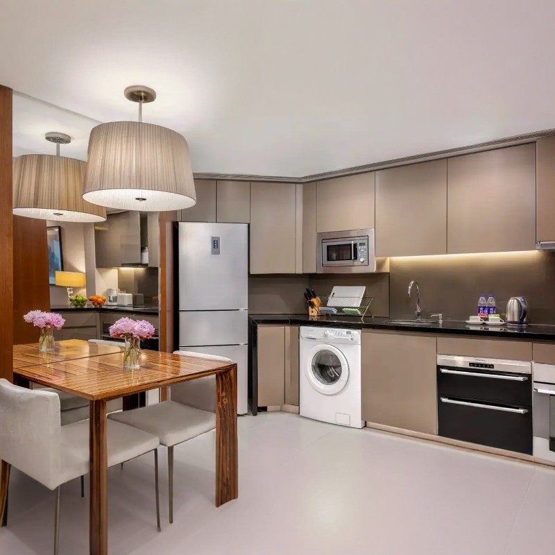 每套公寓均配备设施齐全的小厨房,为差旅人士提供极大的生活自主性。无论是需要加热便当、煮一杯咖啡提神,还是临时准备简单餐食,都能轻松实现。尤其适合长期出差、注重饮食健康或有特殊口味偏好的旅客。相比传统酒店餐饮受限,这种居家式配置让差旅生活更舒适、更自由,有效缓解旅途疲劳,提升整体出行体验。