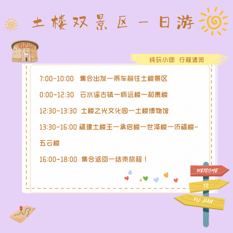 专为差旅人士设计的高效行程,从厦门市区便捷出发,当日往返南靖云水谣与永定土楼王,无需额外住宿安排。全程精品小团,灵活适配商务间隙,让您在紧凑日程中沉浸式体验世界文化遗产——福建土楼的独特魅力,兼顾效率与深度文化探索。