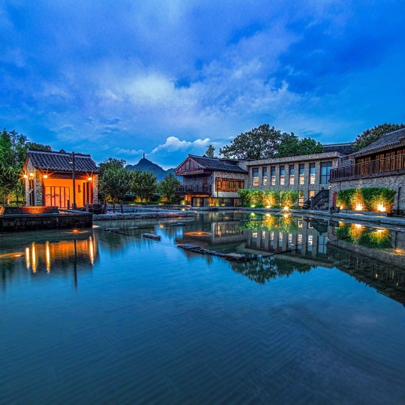 坐落于青岩古镇腹地,酒店被青山环抱,推窗即见层峦叠翠与古树参天。对于长期处于高压差旅状态的职场人而言,这里的自然景观与宁静氛围能有效舒缓神经、恢复精力。即便只有短暂停留,也能在鸟鸣与微风中重获能量,以更佳状态投入后续工作。