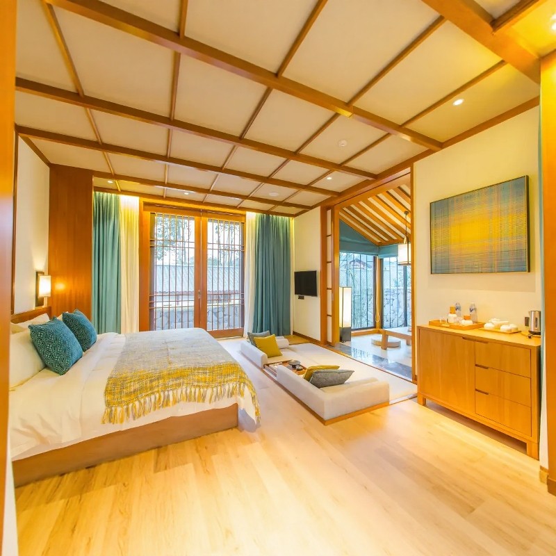 花间堂作为国内知名文化设计酒店品牌,其茶马司分店巧妙融合古道元素与现代美学,客房配备高品质床品、智能设备及观景阳台。无论是接待客户小聚,还是独自休憩,都能彰显品味与格调。对注重形象与效率的商务旅客而言,这是一处兼具私密性与美感的理想下榻之所。