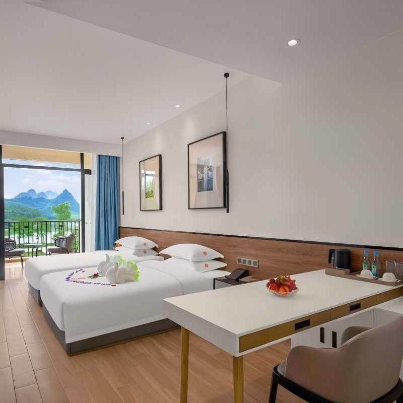 酒店借鉴国际知名阿丽拉(Alila)品牌设计理念,以极简建筑融合喀斯特山水,由国际LAB景观事务所操刀园林规划。每间客房均实现‘举目即景’,将中国山水画意境融入现代差旅空间。对追求审美与品质的商务人士而言,这不仅是一晚住宿,更是一场视觉与精神的双重疗愈。