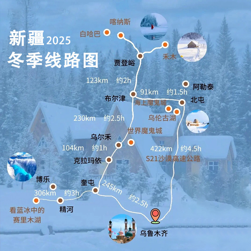 线路精心设计为乌鲁木齐—阿勒泰—博尔塔拉—乌鲁木齐的闭环公路旅行,覆盖北疆核心目的地,避免重复折返。差旅人士可一次性高效完成多地考察或客户拜访,同时顺路游览喀纳斯、禾木、赛里木湖等景点,实现商务与旅游的无缝衔接,最大化利用出差时间。