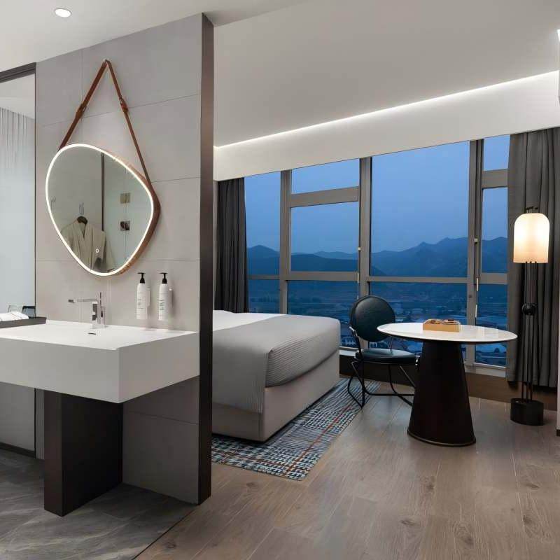 酒店选址极具战略眼光,位于博山区西外环主干道,毗邻高速入口,同时被景区、餐饮、商超环绕。这种“交通枢纽+文旅资源+生活配套”三位一体的区位优势,使商务出行效率倍增——客户拜访、景区游览、生活采买均可在短距离内完成。对于需要兼顾多项任务的差旅者而言,节省的时间与精力远超普通住宿选择,真正实现高效差旅。
