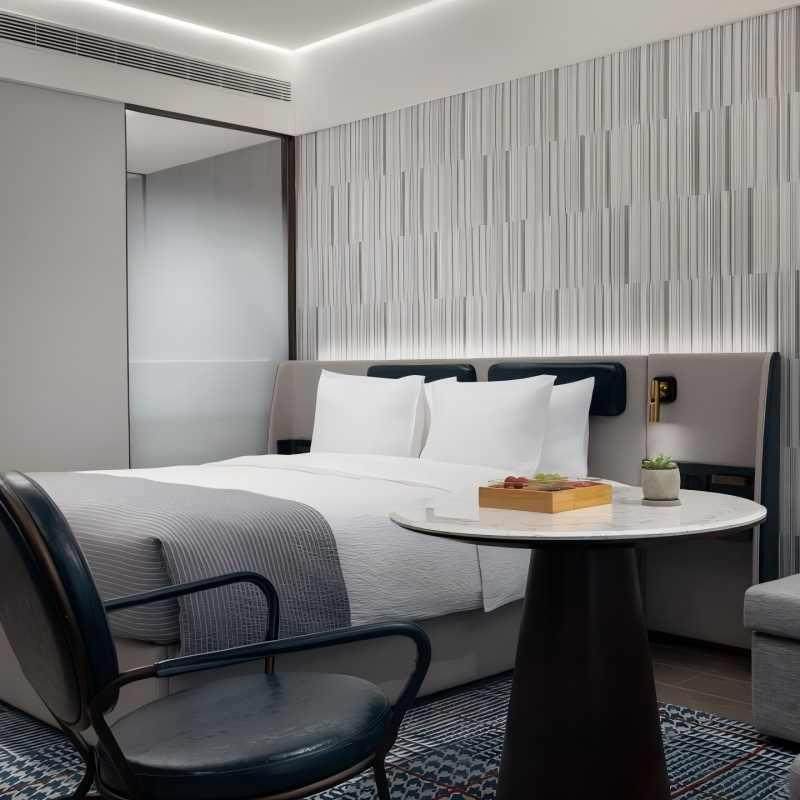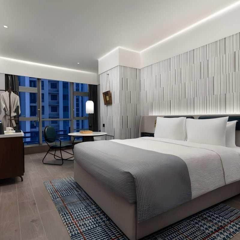 差旅住宿升级:高级豪华大床房配65寸智能电视与雨林花洒