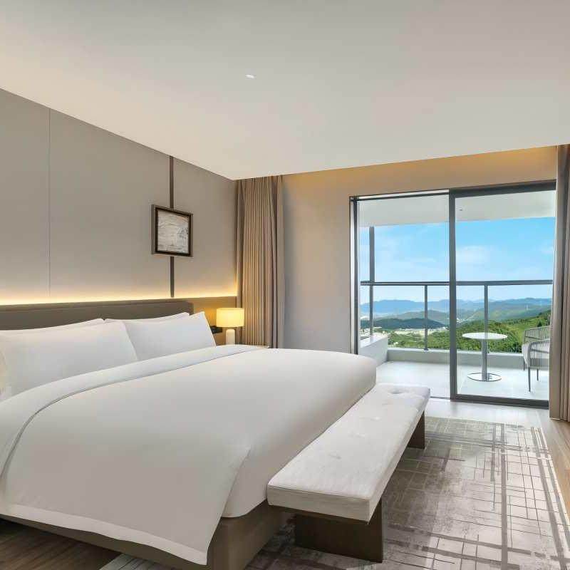 坐落于广东韶关新丰,酒店被青山绿水环绕,空气清新,远离城市喧嚣。这种天然静谧的环境不仅有助于深度睡眠,更能提升工作效率与决策质量。对于需要专注思考或进行重要谈判的差旅人士而言,这里既是避世桃源,又是高效办公的理想场所,真正实现“在自然中工作,在风景里休憩”。