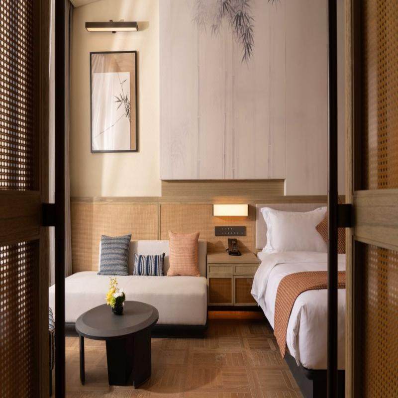 施柏阁大观酒店不仅提供奢华住宿,更配备会议、SPA、健身等综合设施,满足差旅人士多元需求。坐落于樟江环绕的“世外桃花岛”,隔绝外界喧嚣,却未牺牲商务便利性。在此,您既可召开小型会议,也可在瀑布声中冥想放松,实现工作与休憩的动态平衡,打造真正意义上的“高效差旅绿洲”。