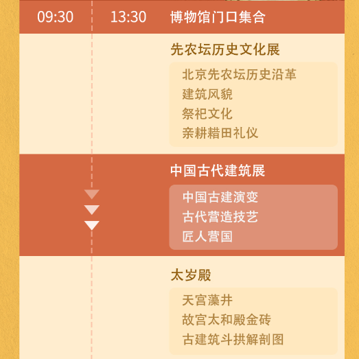 行程紧扣“历史文化游”主题,深入北京古代建筑博物馆,系统了解从唐宋到明清的建筑演变、营造技艺与礼制内涵。出差之余,沉浸于千年营造智慧之中,让商务旅程多一份文化底蕴与精神滋养。