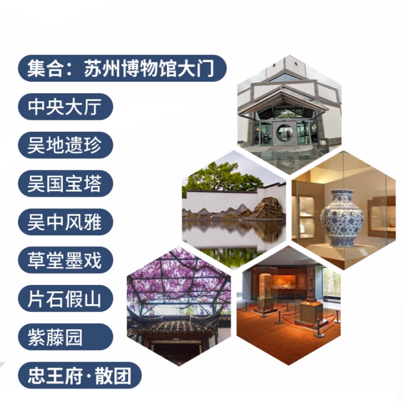 专为差旅人士设计的苏州博物馆精品小团,仅需1.5小时即可沉浸式体验江南文化精髓。行程紧凑高效,无需额外安排全天时间,特别适合在商务会议间隙或出差前后灵活插入。由文史大咖现场解读馆藏珍品,让您在有限时间内获得高价值文化体验,兼顾工作与休闲,实现差旅与度假的无缝融合。