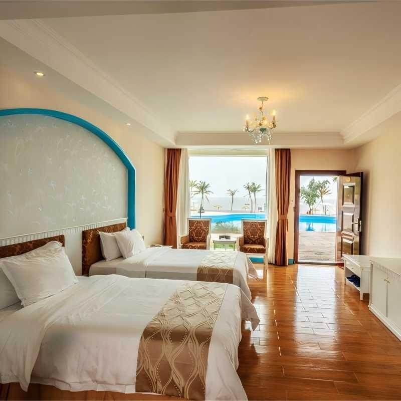 酒店不仅提供舒适客房,还配备中西餐厅、野炊吧、会议室、KTV、棋牌室及大型海水泳池等多元化设施。差旅期间,您可高效完成线上会议,随后在沙滩吧享受日落;或组织小型团建活动,利用沙滩排球场增进团队凝聚力。完善的配套让单一住宿升级为全方位生活方式体验,真正实现‘出差如度假’的理想状态。