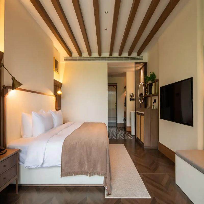 酒店以黑白格纹、百叶窗与精选艺术品构建独特空间美学,每一处细节都体现人文关怀与设计巧思。若您需接待客户或进行小型洽谈,此环境远胜普通商务酒店——静谧、雅致且富有文化气息,既能彰显您的品味,又能让合作氛围更加轻松融洽,助力商务关系升温。