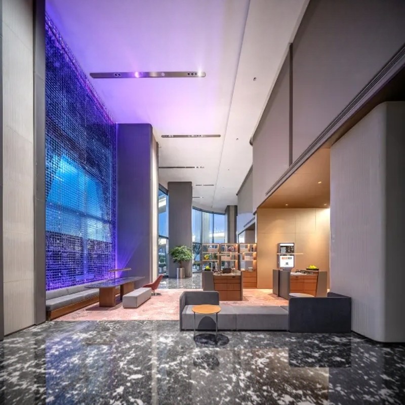 重庆陆海国际Pagoda君亭设计酒店坐落于嘉陵江畔,步行2分钟即达化龙桥地铁站,交通便利,是商务差旅人士的理想下榻之选。酒店提供江景豪华大床房或双床房,客房面积25至50平方米,融合简约时尚设计与IOT智能客控系统,兼顾高效办公与舒适休憩。8楼设有兼具社交与移动办公功能的复合生活空间,让差旅途中也能轻松切换工作与休闲模式,真正实现“出差即度假”的体验。