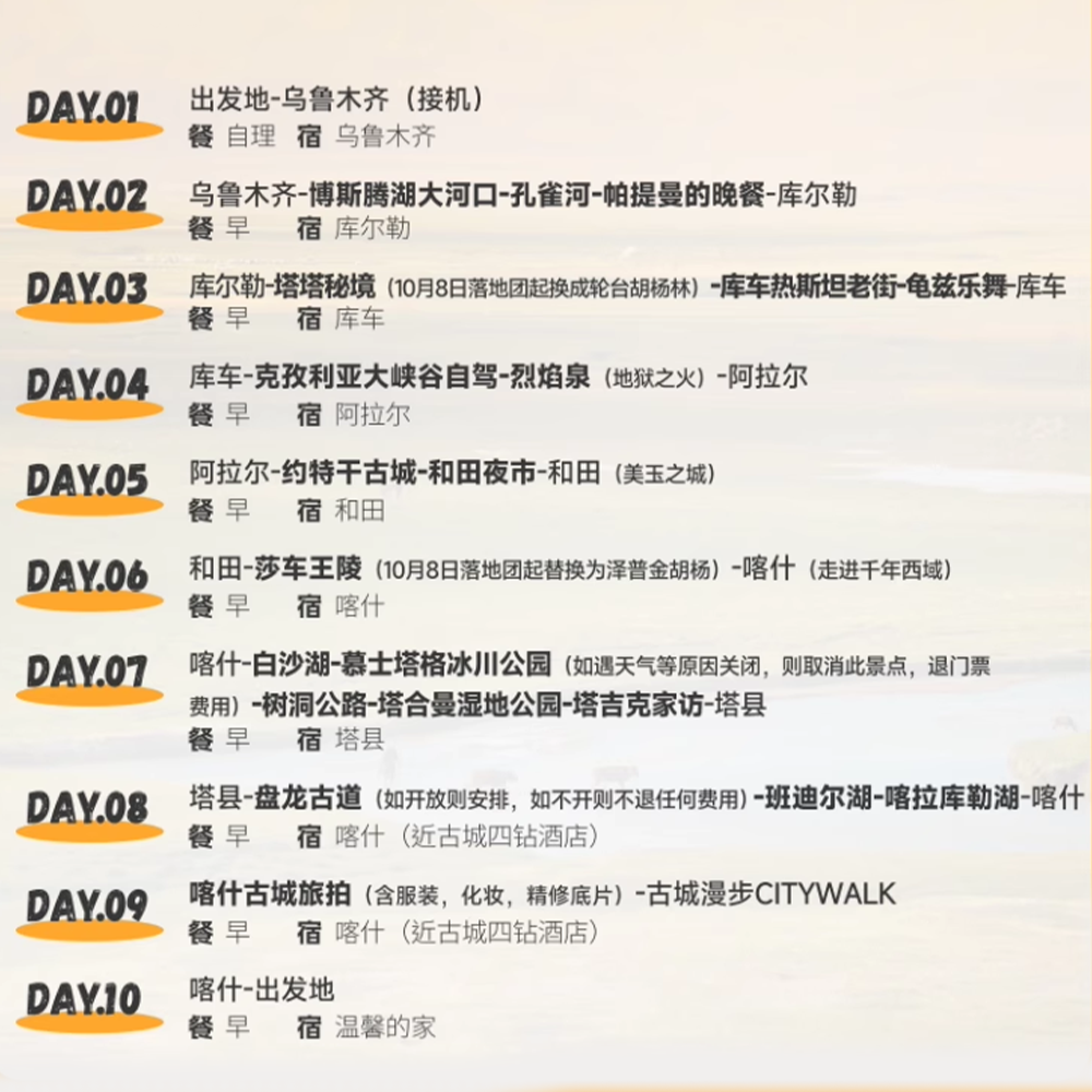 针对年假有限但渴望深度体验的职场人士,本产品精心压缩南疆精华于10日内,每日行程张弛有度,避免走马观花。从喀什人文到帕米尔自然,从沙漠边缘到高原湖泊,内容密度高却不显仓促。特别适合利用年假+周末拼出10天长假的差旅族,一次出行即可收获多元地理、民族、历史维度的丰富体验,实现假期价值最大化,远超普通短途度假的满足感。