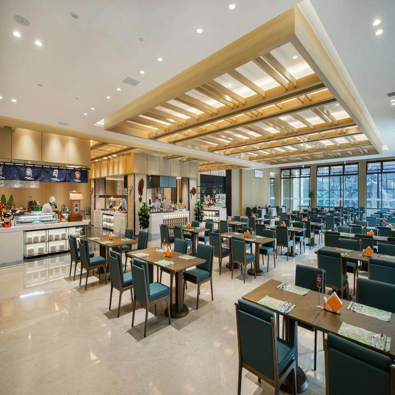 差旅优势点:全景自助餐厅满足多元饮食需求,高效解决用餐难题