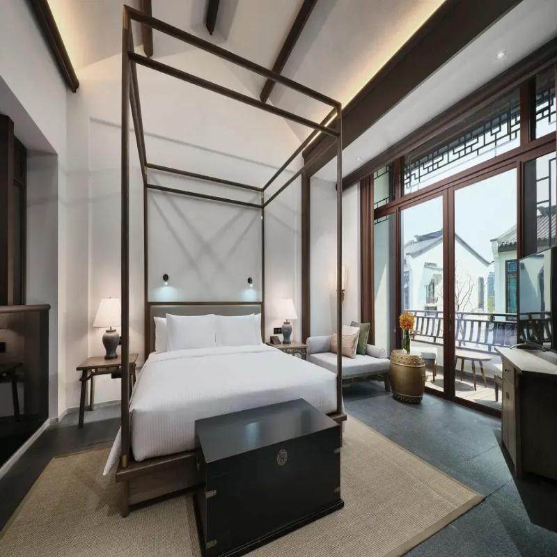 入住期间可乘坐传统乌篷船从大堂直达别墅区,船行水道弯弯,仿若穿越至古时江南。临湖别墅推窗见水,湖景房与江河景观房设计巧妙融合自然与人居。在紧张的差旅节奏中,这一独特体验能有效舒缓压力,帮助您以更佳状态投入后续工作,实现真正的‘高效工作,诗意生活’。