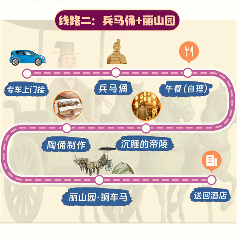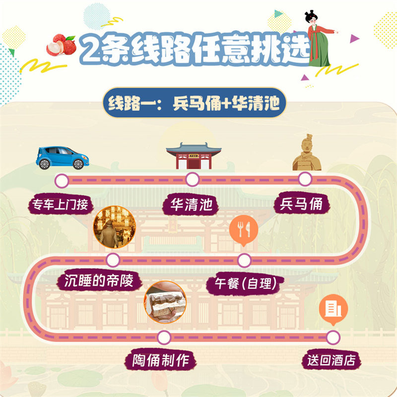 以“秦文化”为主题的一日游路线,精准覆盖兵马俑、华清池等核心IP,避免无效奔波。专为差旅人群优化动线与时间分配,确保在半天至一天内完成高浓度文化体验,让短暂停留也能成为难忘旅程,真正实现“出差即度假”的理想状态。