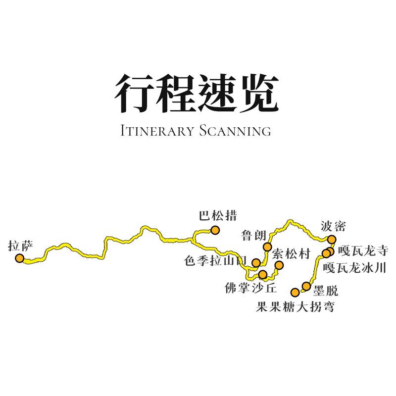 专为高原差旅人士优化设计,行程紧凑但不失深度,5天内完成拉萨—林芝—嘎瓦龙冰川环线。重点突出航拍摄影与越野探险,满足对内容产出与冒险体验的双重期待。所有活动均可单人参与,无需协调他人时间,极大适配临时出差或周末延伸假期的场景,让有限时间发挥最大旅行价值。