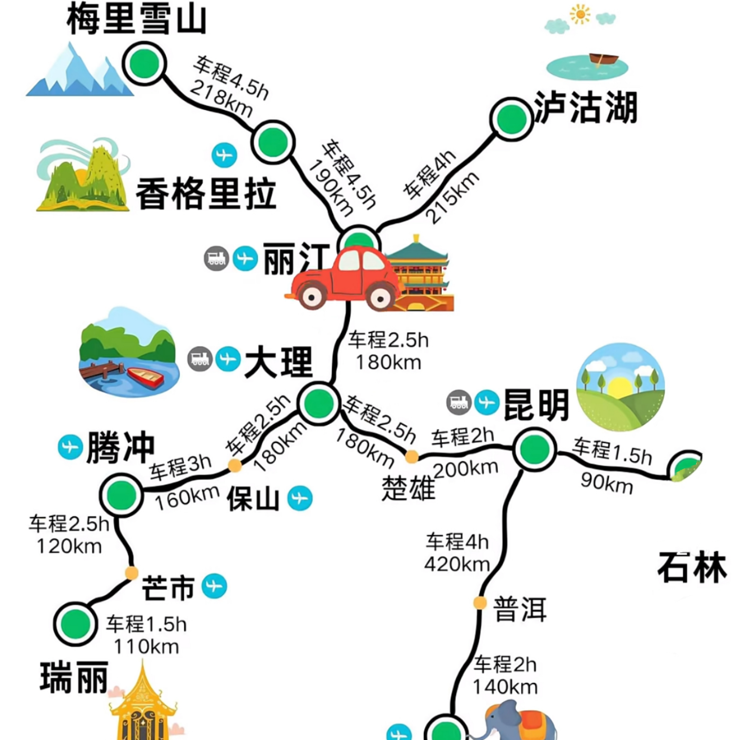 精心规划昆明出发,经大理至丽江的6天5晚环线行程,充分利用高铁与包车接驳,减少无效交通耗时。对于时间宝贵的差旅人群,此路线避免重复折返,实现高效游览石林地质奇观、洱海生态风光、圣托里尼风格网红打卡点及玉龙雪山冰川索道,最大化利用有限假期,兼顾深度与广度。