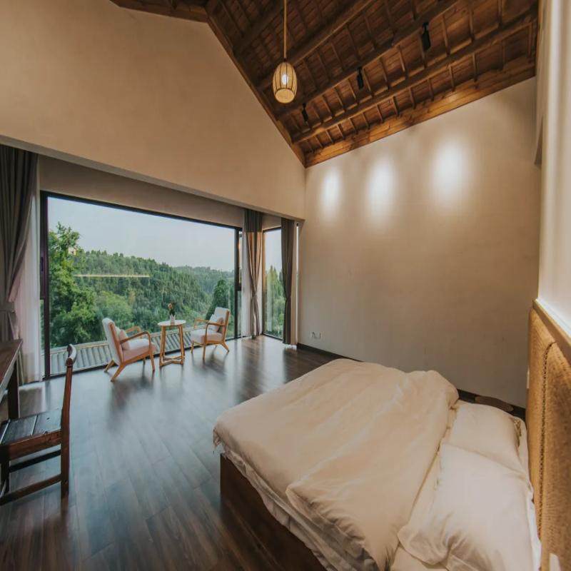 吾家小院以‘山居美学’为主题,客房设计简约雅致,大床房直面山景,营造静谧私密氛围。作为一家具备商务接待能力的主题民宿,它既保留了度假的松弛感,又不失差旅所需的实用性——高速WiFi、独立卫浴、安静环境、安全停车一应俱全。搭配世界级文化遗产大足石刻的深度游览,让您的差旅不止于完成任务,更是一场身心兼修的文化之旅。