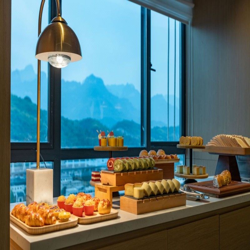 酒店客房设计现代舒适,空间宽敞、采光充足,部分房型可直面张家界奇峰秀水,清晨拉开窗帘即可欣赏云雾缭绕的山景或壮丽日出。对差旅人士来说,结束一天紧凑行程后,能在静谧环境中放松身心,是高效恢复状态的关键。这种将自然景观融入住宿体验的设计,极大提升了差旅的品质感与愉悦度。