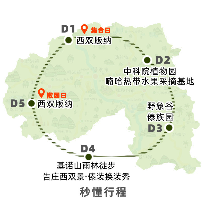 专为差旅人群优化的5日4晚行程,科学串联野象谷、中科院植物园、傣族园及基诺山四大核心区域,避免无效奔波。每日活动节奏张弛有度,上午高效游览,下午预留处理工作或自由休整时间,确保差旅效率与度假质量兼得,最大化利用有限假期。