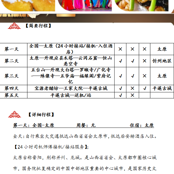 针对杭州、南京、苏州等长三角核心城市的差旅人群,本线路提供含机票的全包式服务,极大简化出行准备。行程聚焦山西北部人文景观,融合寺庙朝圣、古村探访与边塞历史体验。4钻酒店保障住宿品质,专业导游讲解深化文化理解,让忙碌的职场人在有限时间内获得深度放松与精神滋养,是高效差旅度假的理想选择。