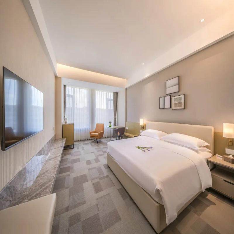 虽位于城市近郊,但酒店营造出太湖之畔般的雅致栖居氛围,客房静谧舒适,部分房型可远眺自然景致,助您缓解差旅疲劳。周边融合山水风光与露营野趣,工作之余可短暂逃离都市喧嚣,在莲花岛影视城或长影世纪城中感受沉浸式娱乐,实现身心双重放松。