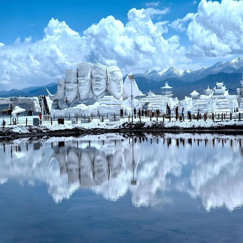 茶卡盐湖不仅是自然奇观,更是露天艺术殿堂。沿途分布着多组大型盐雕作品,既有磅礴气势又不失精雕细琢,展现人与自然共生的智慧。差旅人士可在短暂休憩中感受艺术熏陶,将商务节奏切换至审美模式,实现身心双重充电。
