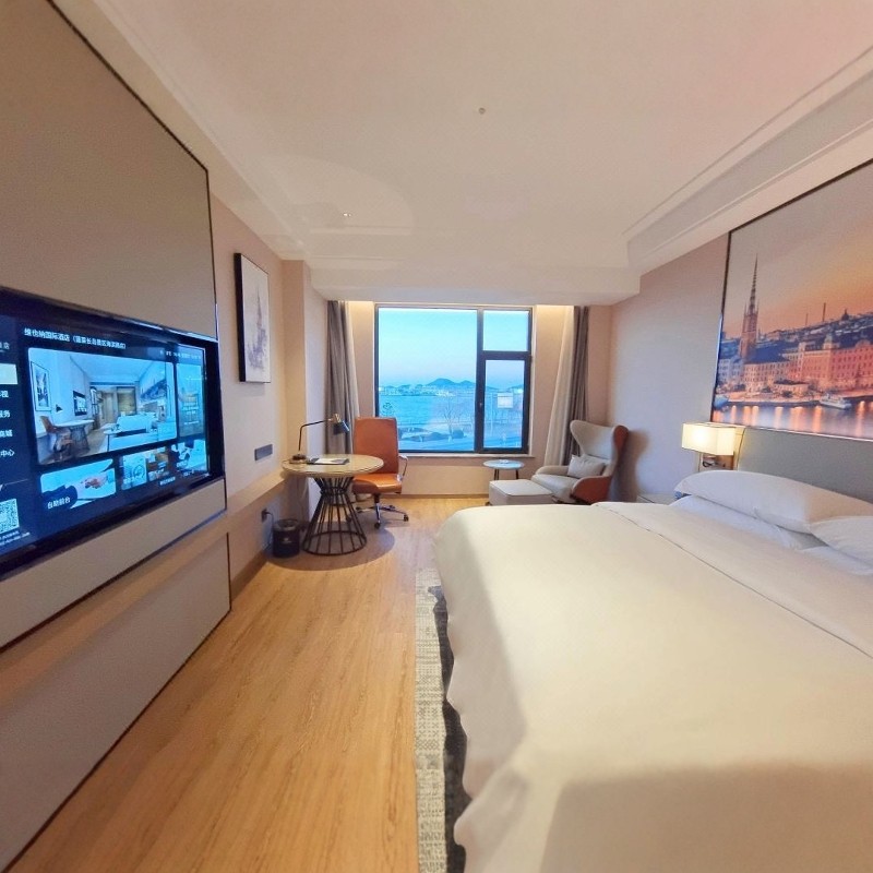 酒店提供海景房选项,推窗即见碧波万顷,海风拂面,有效缓解高强度工作带来的身心疲惫。对于长期处于高压环境的差旅人士而言,夜晚枕着涛声入眠,清晨被第一缕海光唤醒,是难得的疗愈体验。这种将自然疗愈融入差旅住宿的设计,显著提升整体出行满意度与恢复效率。