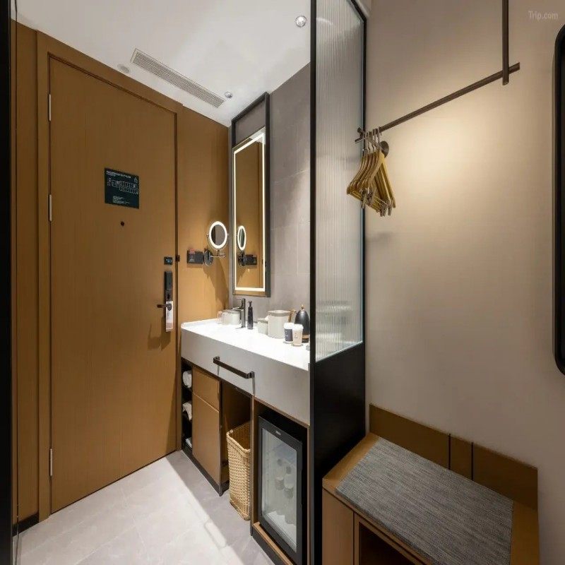 亚朵‘轻居’理念强调简约而不简单,客房设计融入济南泉水文化元素,木质色调与柔和灯光营造出宁静氛围。功能分区清晰,行李架、多功能插座、USB接口等细节处处体现对差旅需求的洞察,让酒店房间不仅是过夜之所,更是高效工作的临时办公室与心灵栖息地。