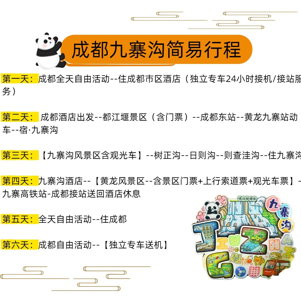 含机票四川成都6天5晚自由行九寨沟黄龙风景区独立专车4钻酒店 - 定制游预订