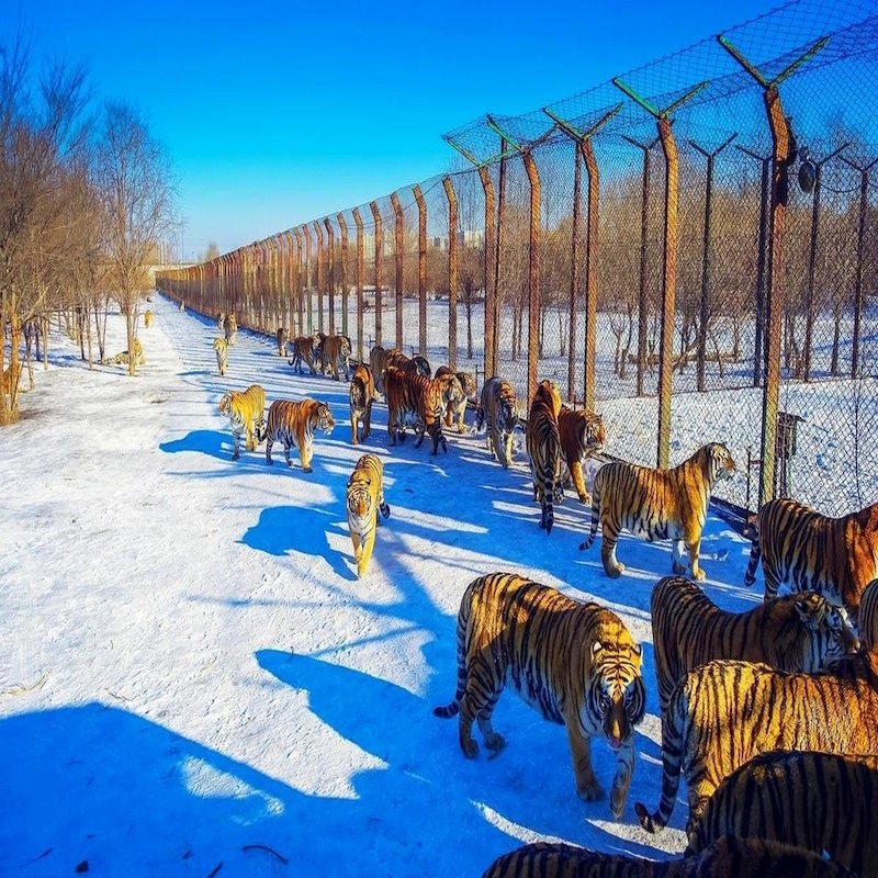 丰富的虎群与互动,拥有约千只不同年龄的纯种东北虎