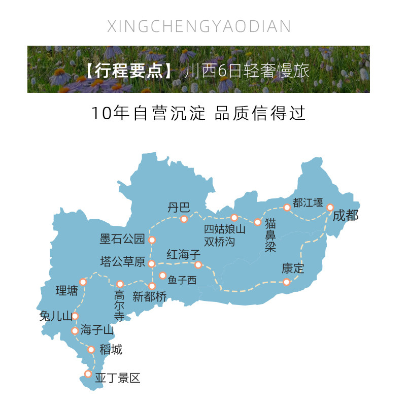 专为注重形象与社交分享的差旅人群设计,全程包含“川西旅拍”服务,在稻城、四姑娘山、鱼子西、新都桥等绝美景点由专业摄影师跟拍。您可在雪山、草原、藏寨背景下留下高质量影像,既满足个人纪念,也适用于商务社交平台展示。旅拍环节已无缝融入6天行程,无需额外协调时间,高效兼顾工作与美学记录。