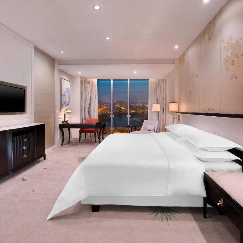 宿于喜来登湖景房,推窗即览静谧湖景,奢华床品呵护您的一夜安眠