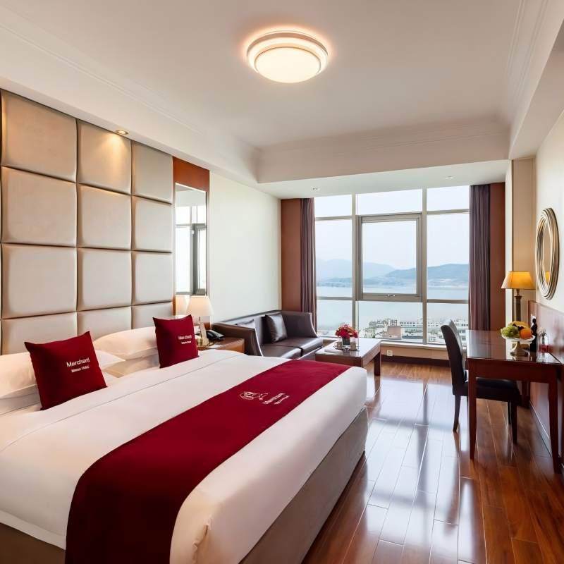 所有客房配备消毒柜、智能马桶盖、高级洗浴用品及优质床品,践行‘绿色生活’理念。行政房型空间宽敞,采光充足,部分可直览西湖景致,有助于缓解长时间办公带来的视觉疲劳。高速Wi-Fi、多功能办公桌及静音设计,为远程会议、文件处理提供理想环境,让差旅中的工作效率与身心健康同步提升。