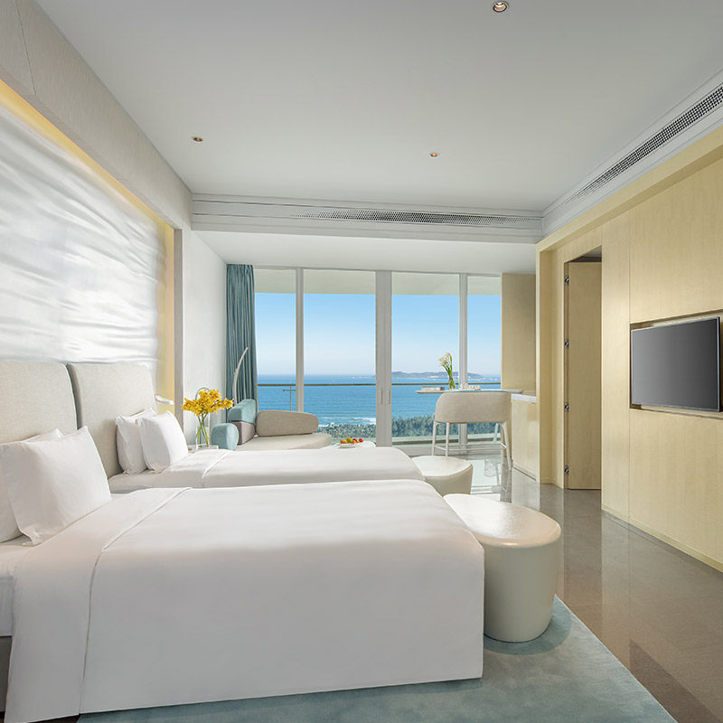 酒店位于海棠湾C位,客房配备180°超广角落地窗,将碧海蓝天尽收眼底。对于经常奔波于各地的差旅人士来说,这样的视觉享受不仅是身心放松的良方,更能为高强度工作后的夜晚带来宁静与治愈。清晨在海景阳台上享用一杯咖啡,或傍晚凭栏远眺落日余晖,让每一次出差都升华为一次轻奢度假体验。