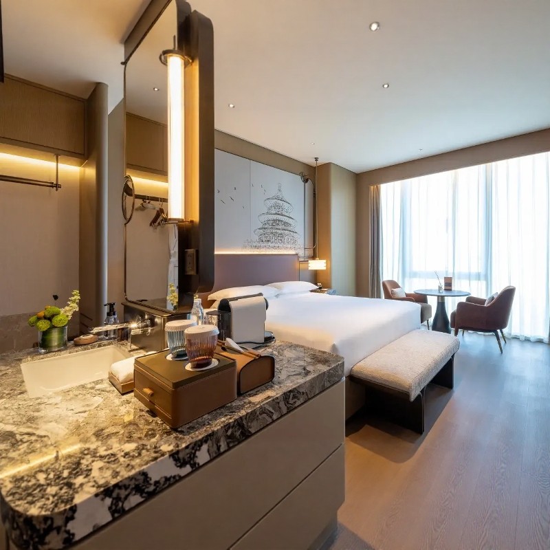 建国饭店不仅地理位置优越,更以中式古典设计营造独特文化氛围。木质屏风、水墨装饰与现代智能设施巧妙结合,让差旅人士在快节奏游玩之余,沉浸于东方美学的宁静空间。这种兼具文化底蕴与实用功能的住宿体验,为环球影城的西式奇幻之旅增添一抹东方韵味,丰富差旅的文化维度。