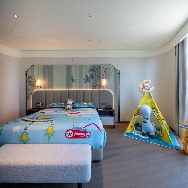 若差旅途中携娃同行,兼顾工作与陪伴实属挑战。本套餐选址于北京环球影城旁的建国饭店,不仅是官方推荐亲子酒店,更融入哈利波特魔法元素与游乐场体验氛围。孩子沉浸于魔法世界的同时,家长也能在中式古典风格的静谧客房中短暂休憩,实现家庭欢乐与个人放松的完美平衡,是带娃差旅的理想方案。