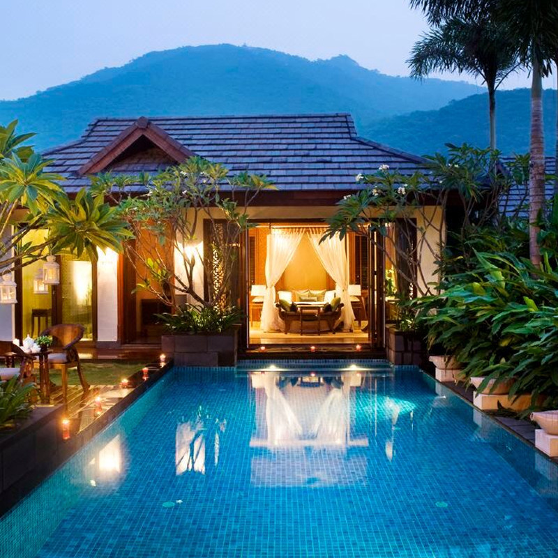 亚龙湾不仅有海,更有背靠热带雨林的山野美景。入住鸟巢酒店或山景别墅,您可在晨起时远眺层峦叠翠,夜晚聆听虫鸣海浪。研究表明,自然环境能显著提升专注力与创造力。对于需要头脑风暴或深度思考的差旅人士而言,这样的环境比传统城市酒店更能激发灵感,让工作事半功倍。