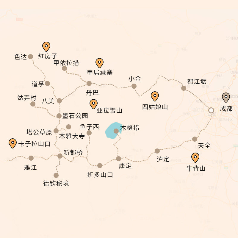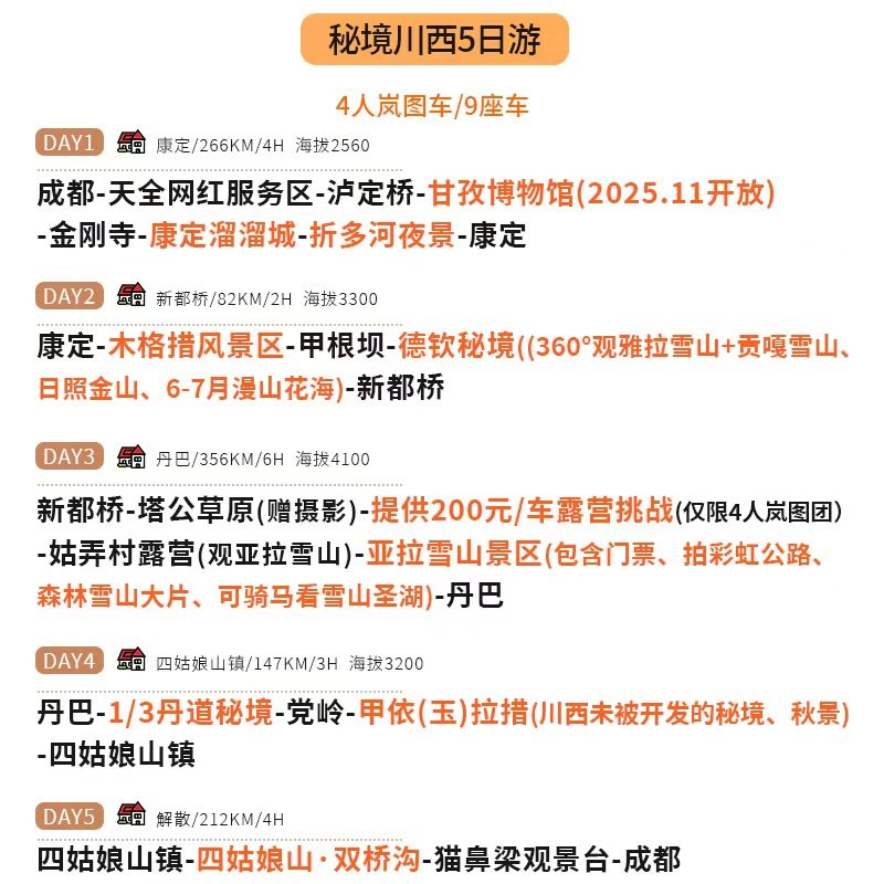 从成都出发仅需数小时车程即可深入川西腹地,特别适合商务人士利用周末或短假期高效出行。行程设计充分考虑差旅人群的时间成本,安排紧凑但不仓促,确保您在有限时间内沉浸于党岭、甲依拉措等高原秘境的绝美风光,实现工作与度假的完美平衡。