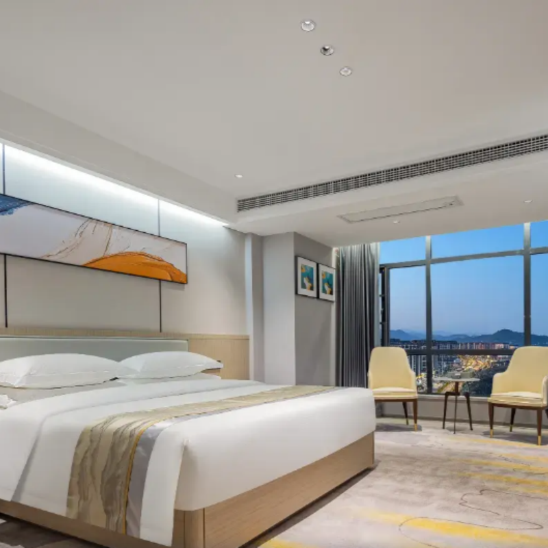 酒店客房配备全屋语音智能控制系统,从灯光、窗帘到空调均可声控操作,搭配高速无线WIFI全覆盖,满足差旅人士随时处理工作的需求。独立空调、智能马桶与24小时热水供应,兼顾效率与舒适。即使在紧凑行程中,也能享受高效便捷的入住体验,让科技为您的差旅减负增效。