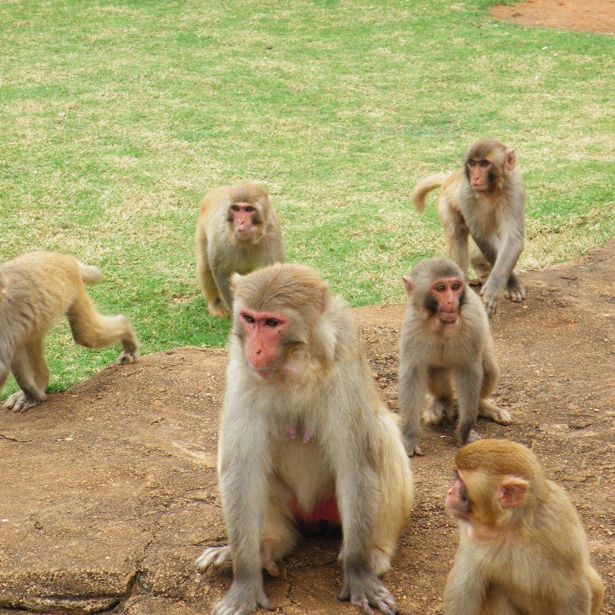 百猴园猕猴群跃椰林,可投喂互动,尽显热带生态奇趣。