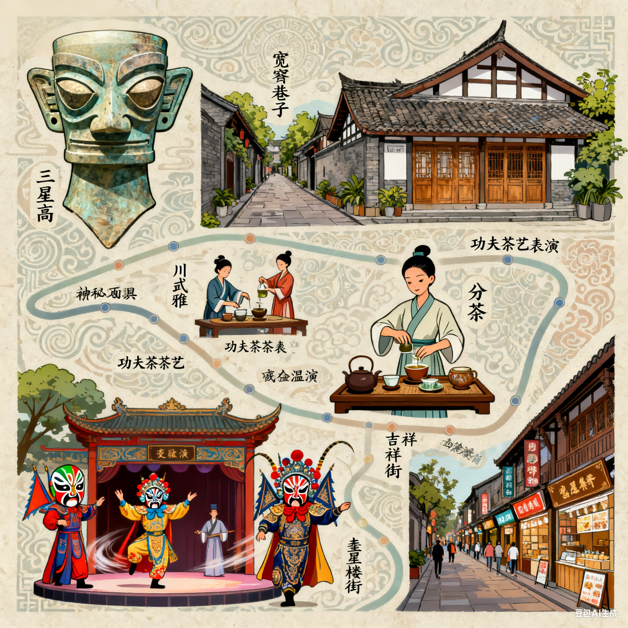 区别于普通观光团,本线路以‘人文旅行’为核心理念,将三星堆的古蜀文明、宽窄巷子的市井文化、茶艺的雅致传统有机融合,形成一条有深度、有脉络的主题动线。差旅者不仅能打卡景点,更能理解背后的历史逻辑与生活美学,使短暂旅程具备长期回味价值。