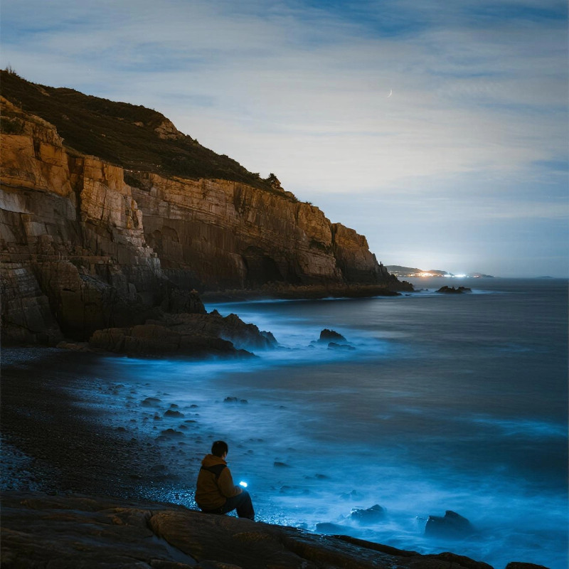 结束一天的商务活动后,不妨在坛南湾邂逅大自然的奇迹——“蓝眼泪”。这种由浮游生物发出的蓝色荧光,只在特定季节夜晚出现,是平潭独有的生态奇观。对于从上海高铁便捷抵达的差旅者来说,这是一场无需远赴海外即可体验的梦幻夜游。短短几分钟的等待,换来整晚的视觉震撼与心灵治愈,让高效工作与诗意生活无缝衔接。