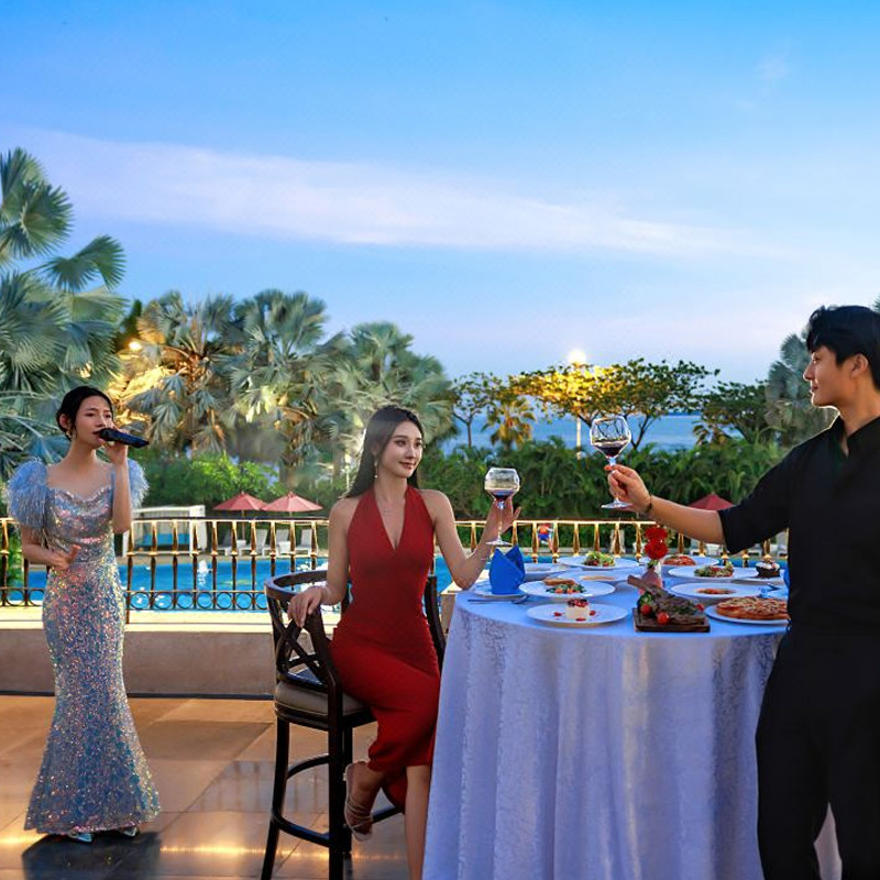 酒店配备室外游泳池及海景客房,为差旅人士提供天然的减压场景。结束一天会议后,可在泳池畅游或于阳台眺望落日海景,迅速恢复体力与专注力。这种融合自然疗愈与高端住宿的环境,有助于提升次日工作效率,是注重身心平衡的职场精英首选。