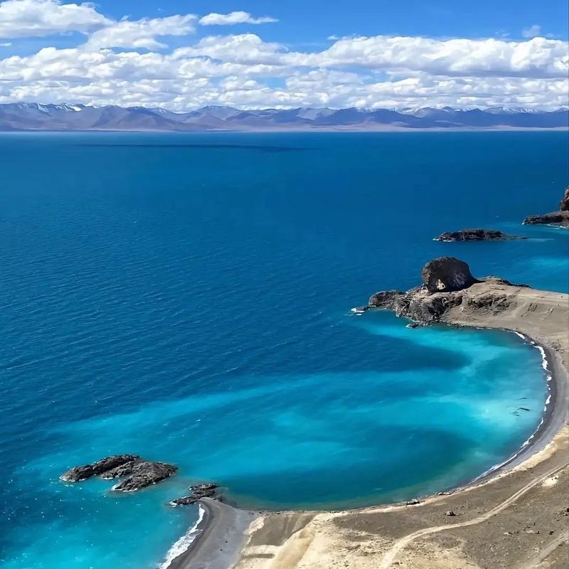 世界海拔最高咸水湖(4718米),湖水湛蓝如宝石,与雪山相映如天堂之境