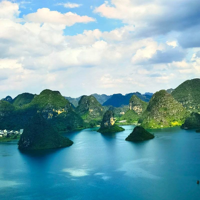 渠洋湖被誉为‘水上桂林’,湖光山色与喀斯特峰林相映成趣。对于从事创意、设计或战略工作的差旅者,此类高审美价值的自然景观有助于打破思维定式,激发创新灵感,实现工作与美学的跨界赋能。