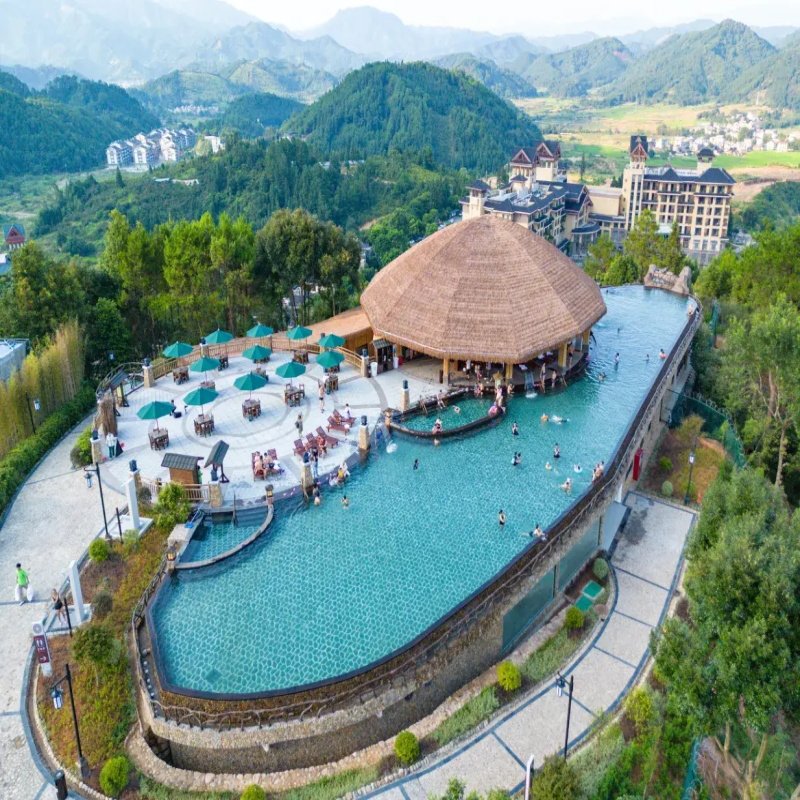 度假村配备长达百米的无边泳池,无论炎夏避暑还是寒冬养生,皆可四季畅游无阻。对差旅人群而言,这意味着即便在短暂的周末或小长假中,也能随时享受高品质的休闲时光。泳池与山林景观融为一体,视野开阔,既能锻炼身体,又能舒缓神经,是高效工作后恢复精力的绝佳选择。