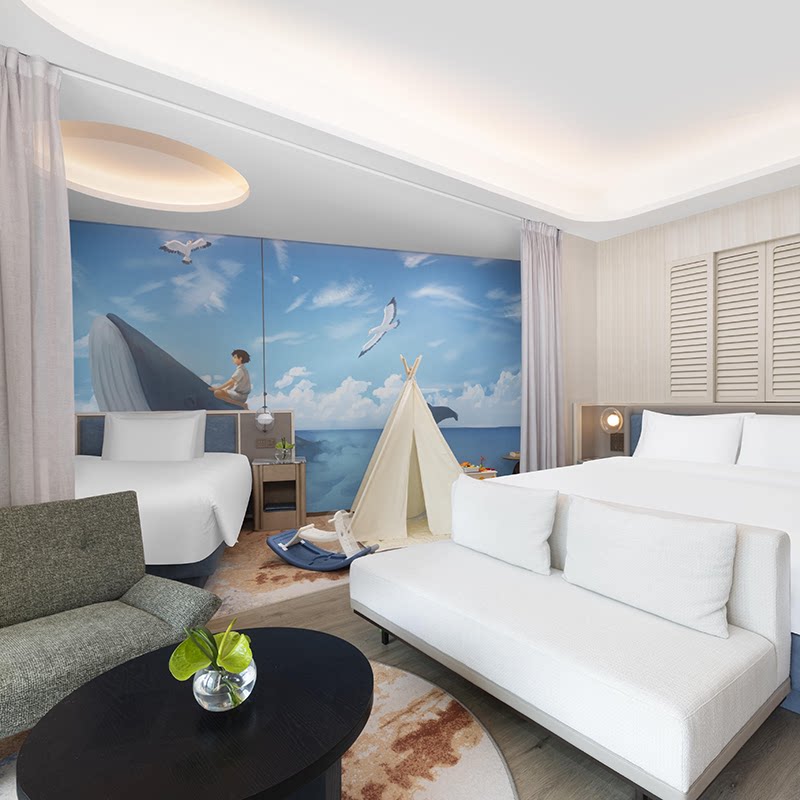 作为“带娃精选”和“亲子酒店”标签加持的度假产品,东山悦华酒店充分考虑家庭出行需求,提供安全、舒适且富有趣味性的儿童友好环境。差旅家长可在处理工作的同时,让孩子在专属区域安心玩耍,甚至共同参与海边活动。这种兼顾职场与家庭的设计,极大缓解了“带娃出差”的焦虑,让差旅不再是负担。