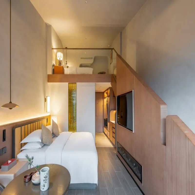 安吉君澜老庄度假酒店作为四钻豪华度假酒店,提供靠山房、山水房、LOFT亲子房及别墅房等多种房型选择,无论是商务差旅人士寻求静谧休憩,还是家庭出游追求亲子互动,都能在此找到理想居所。房间设计融合自然与舒适,窗外即景,推窗见山或临水而居,让疲惫的差旅身心迅速放松。尤其LOFT亲子房配备儿童专属空间,兼顾成人私密性与孩子娱乐需求,是兼顾工作与家庭的理想差旅落脚点。