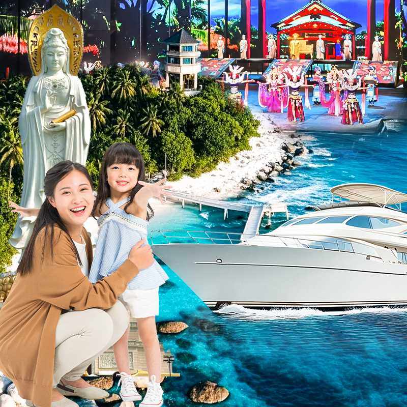蜈支洲岛、呀诺达雨林文化旅游区、南山文化旅游区、千古情表演